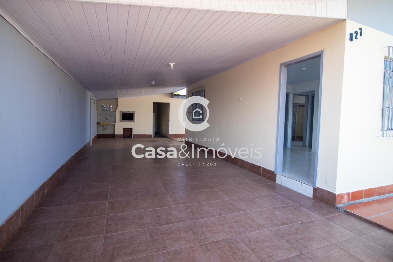 Imóvel de alvenaria com aprox. 140,00 m² de área construída, contendo: - 03 dormitórios - 02 banheiros - Sala - Copa - Cozinha ampla com armários - Lavanderia - Garagem coberta para 03 veículos - Depósito - Área de festas com churrasqueira
