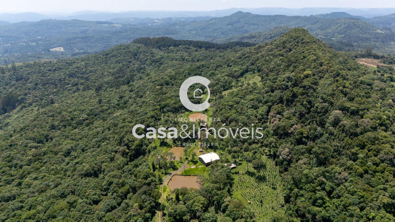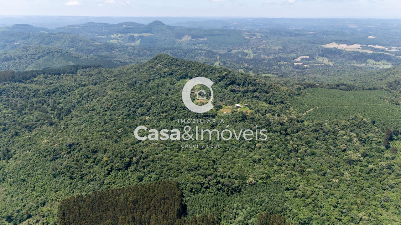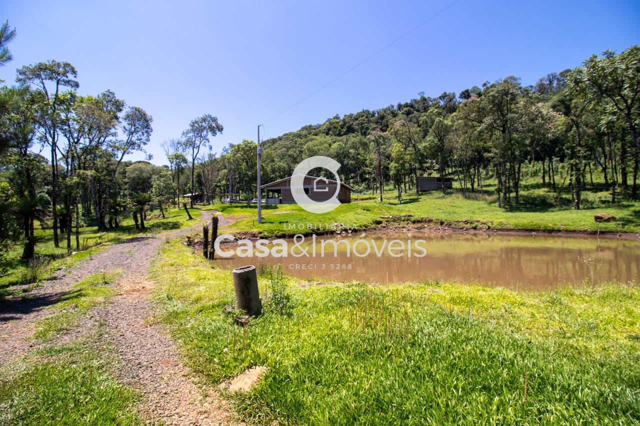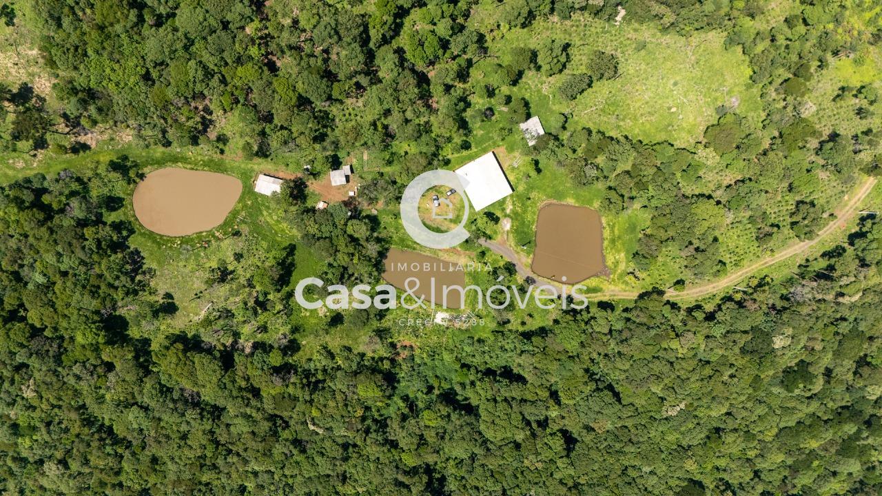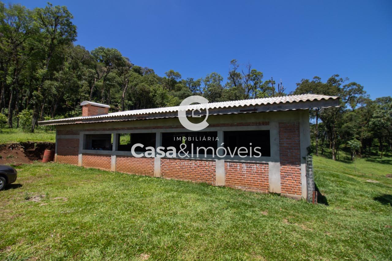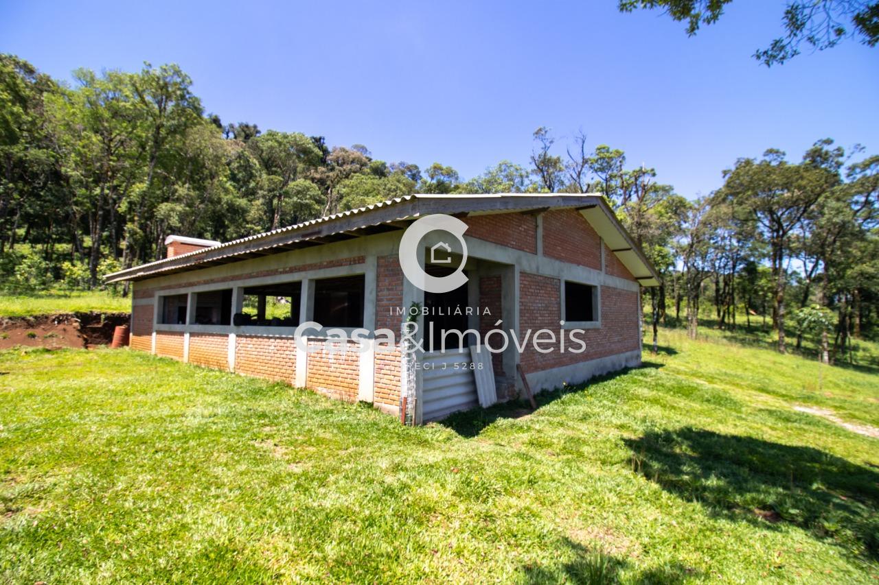 Contendo: - Uma casa de alvenaria com aprox. 150,00 m² de área construída sem acabamento, contendo 02 dormitórios (sendo um suíte), sala, cozinha, banheiro, lavanderia e área de festas com churrasqueira - 20 mil pés de erva mate produzindo - 03 tanques de peixes - Árvores frutíferas - Reflorestamento de pinus + Com luz instalada e água de poço artesiano