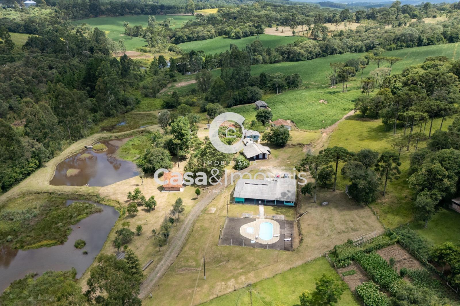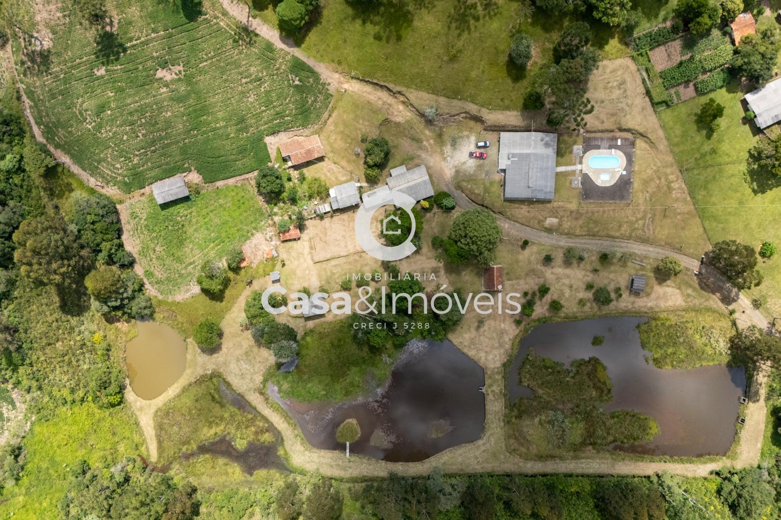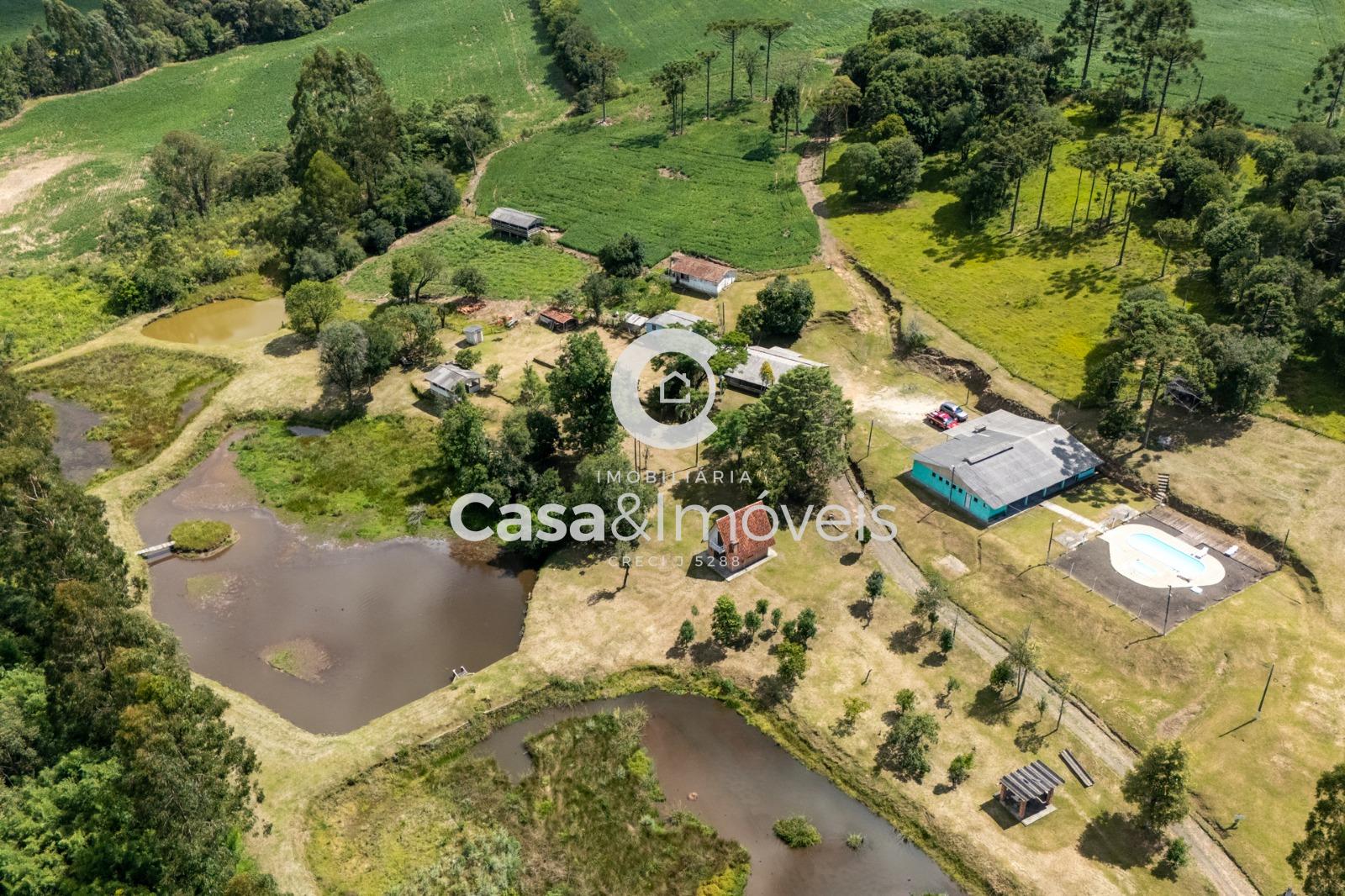 Contendo: - 1 alqueire para plantio - Área de lavoura - Casa principal com 03 dormitórios, sala, cozinha, banheiro e churrasqueira - Chalé com 02 dormitórios, sala, cozinha e banheiro - Casa de caseiro com 02 dormitórios, sala, cozinha e banheiro - Salão de festas com cozinha, 02 banheiros e depósito - 3 tanques - Piscina - Aprisco para ovinos - Luz instalada - Água nascente - Câmera instalada e alarme