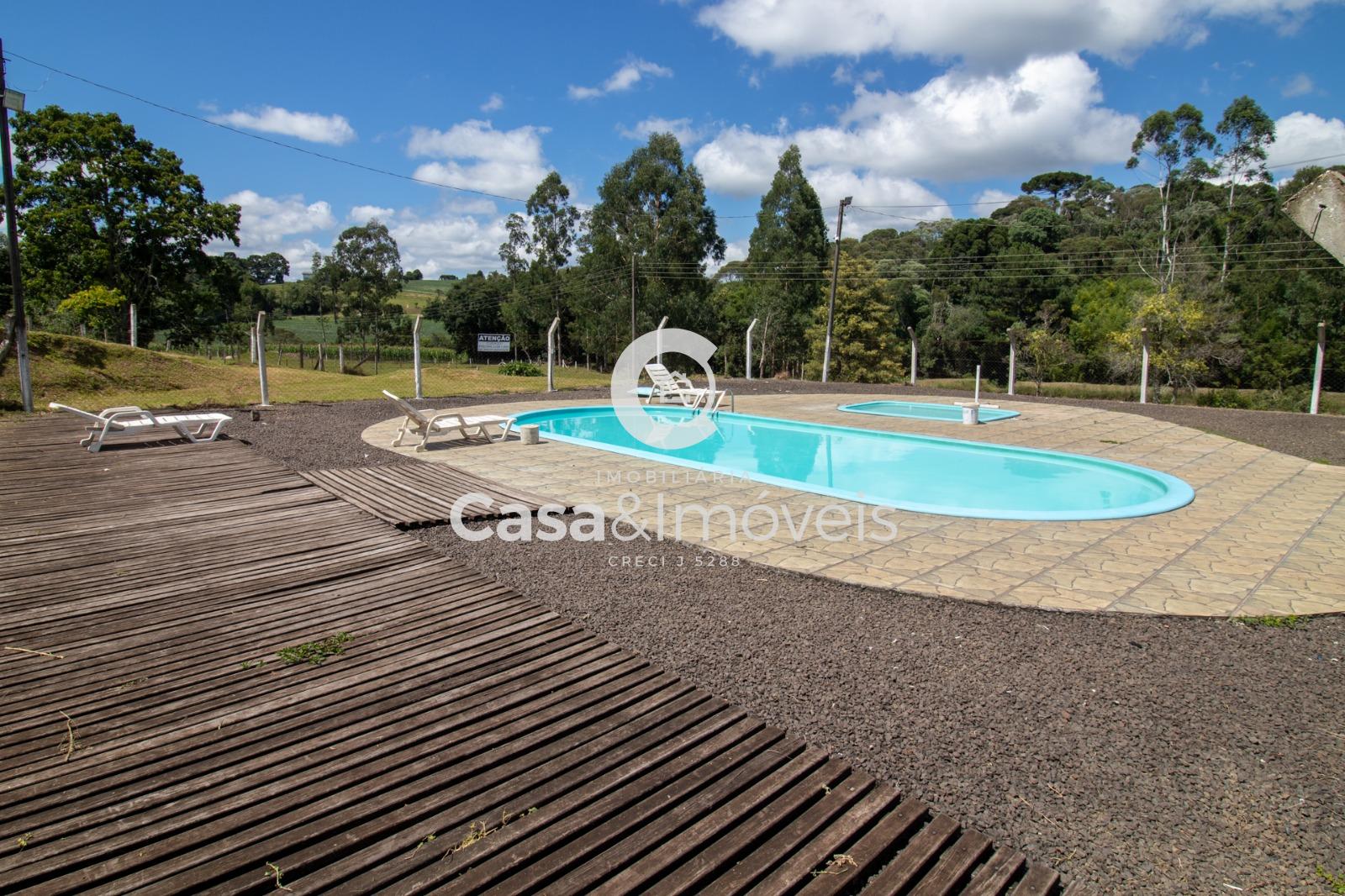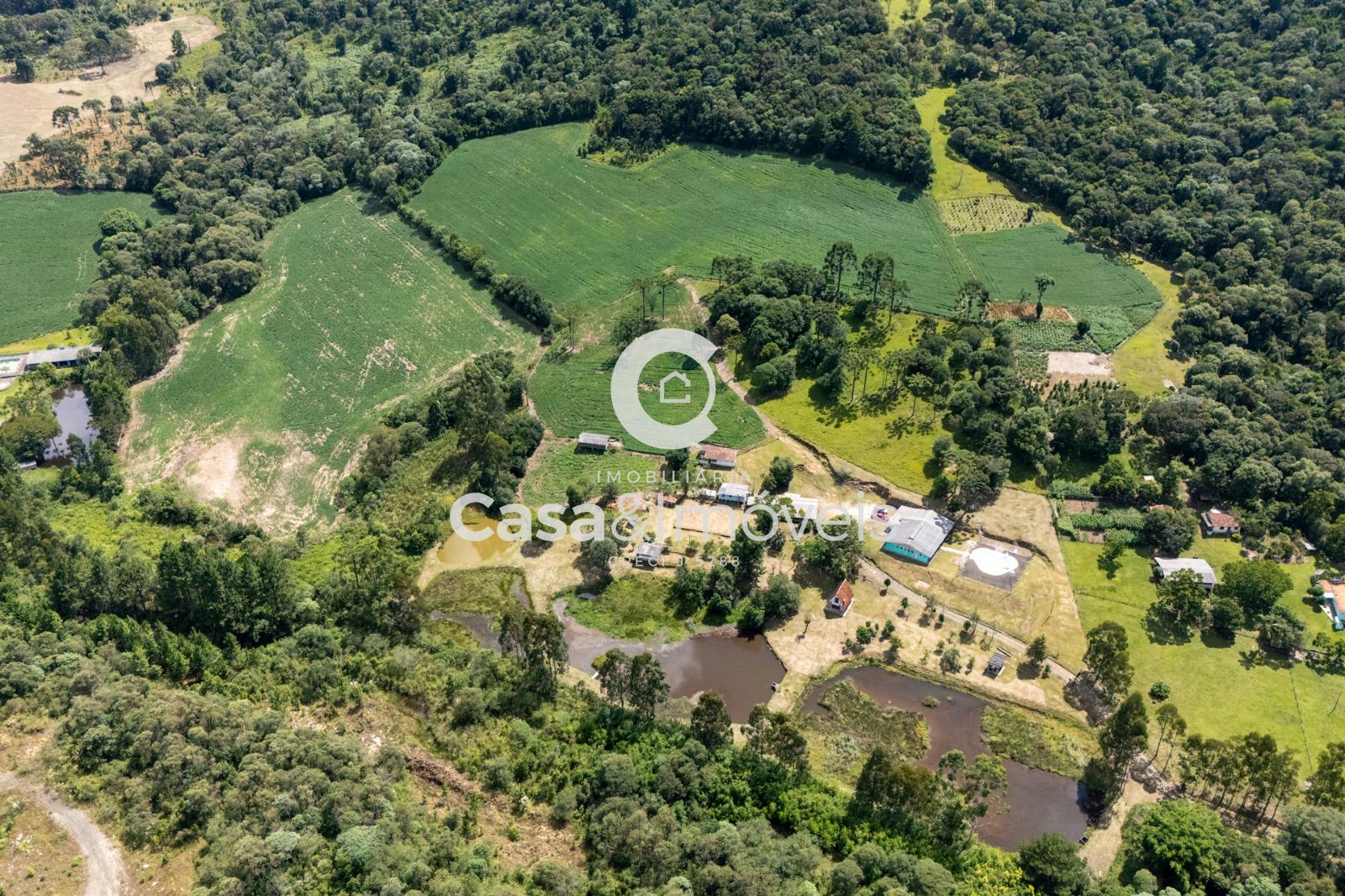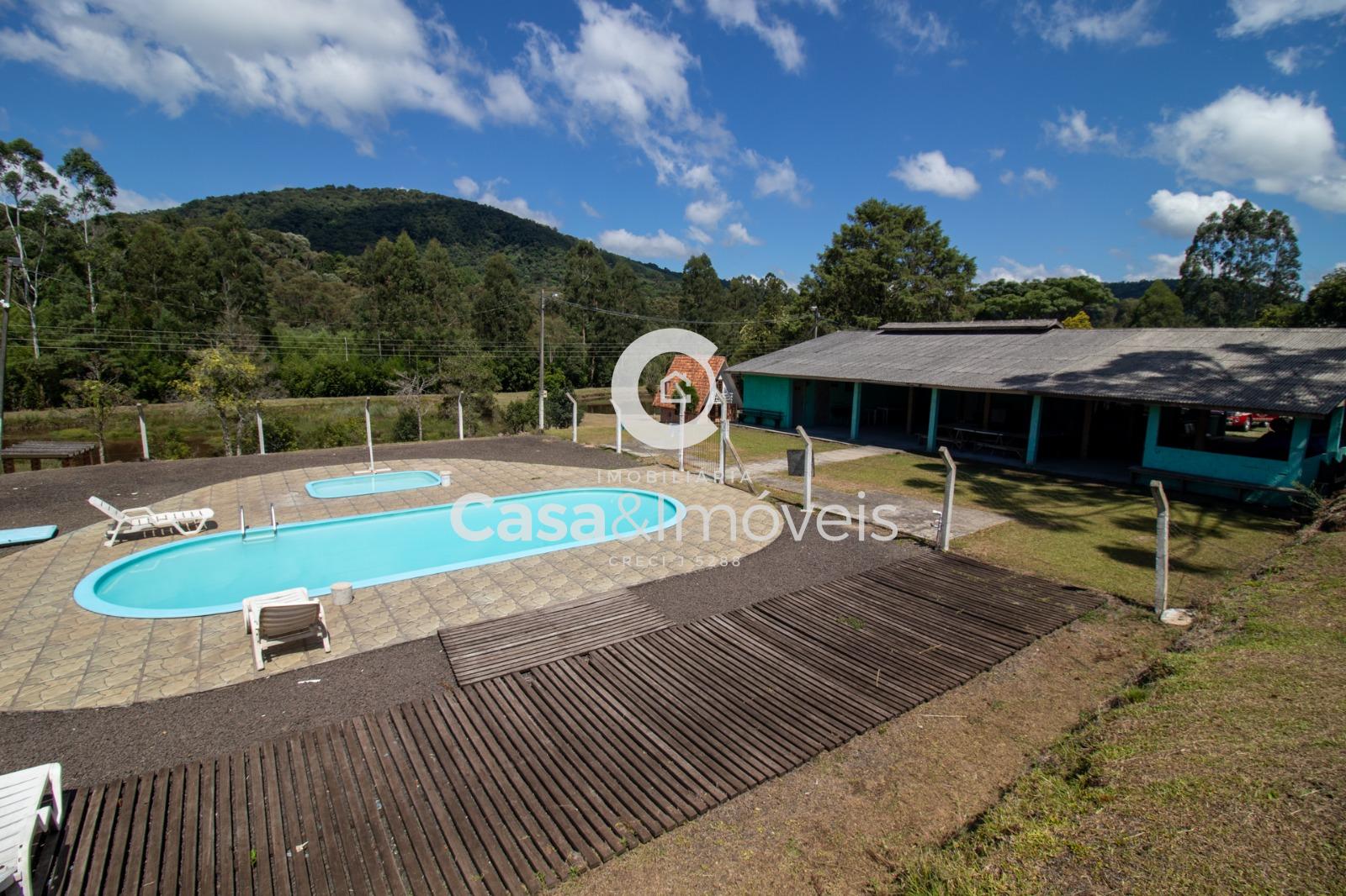 Contendo: - 1 alqueire para plantio - Área de lavoura - Casa principal com 03 dormitórios, sala, cozinha, banheiro e churrasqueira - Chalé com 02 dormitórios, sala, cozinha e banheiro - Casa de caseiro com 02 dormitórios, sala, cozinha e banheiro - Salão de festas com cozinha, 02 banheiros e depósito - 3 tanques - Piscina - Aprisco para ovinos - Luz instalada - Água nascente - Câmera instalada e alarme