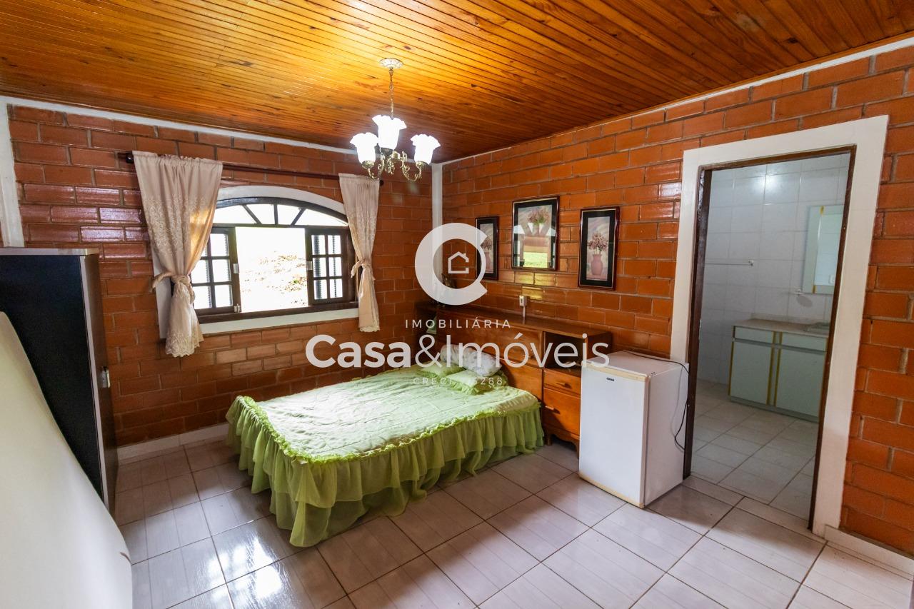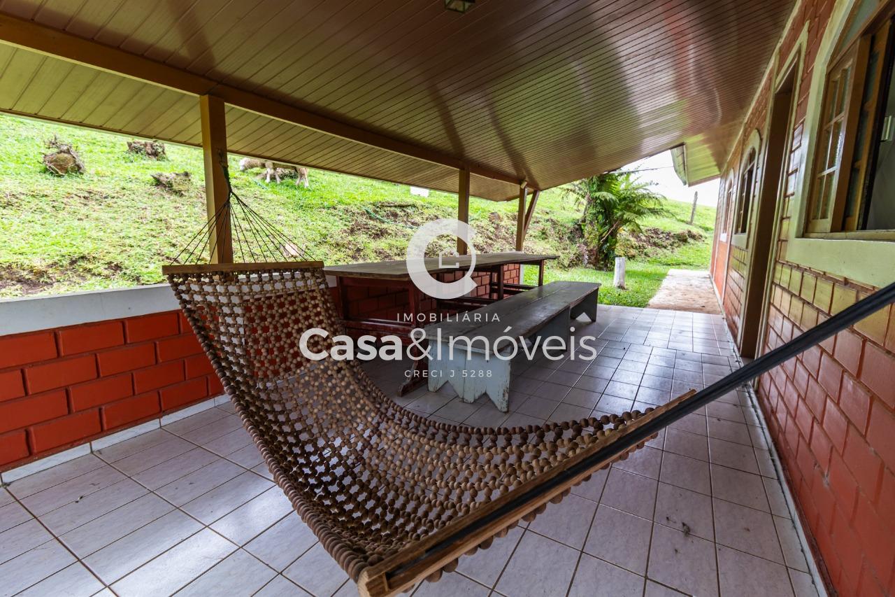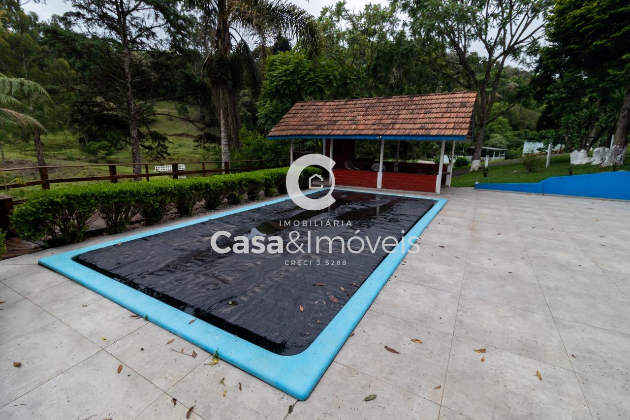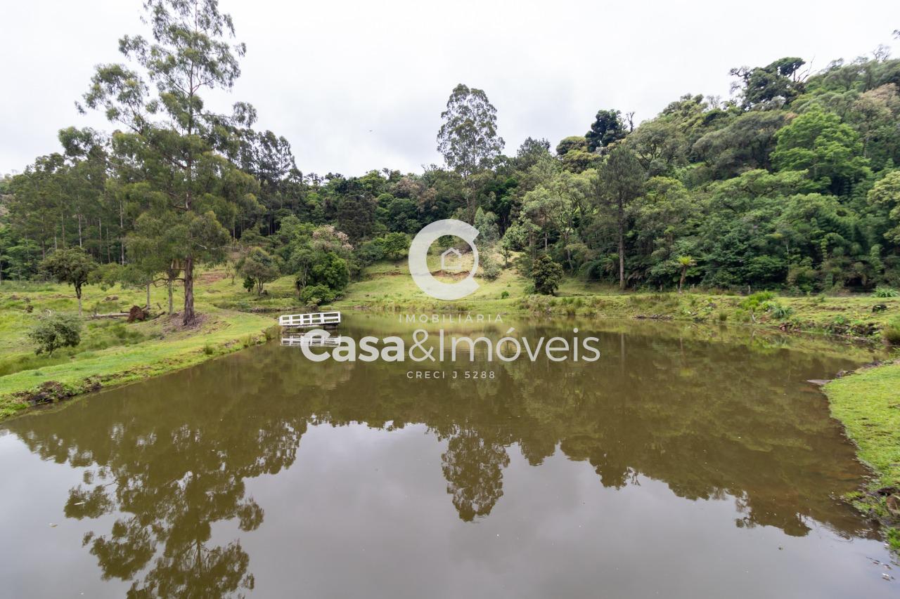 Contendo uma casa de alvenaria mobiliada com aprox. 130,00 m² de área construída, contendo: - 02 dormitórios (sendo um suíte com banheira de hidromassagem com aquecimento a gás) - Sala com lareira e mesa de sinuca - Copa - Cozinha - Banheiro - Varanda - Garagem - Área de festas + Quiosque com churrasqueira + Piscina + Deck + 03 tanques com peixes + Aprisco, galinheiro, chiqueiro e casa para caseiros + Reflorestamento de pinus