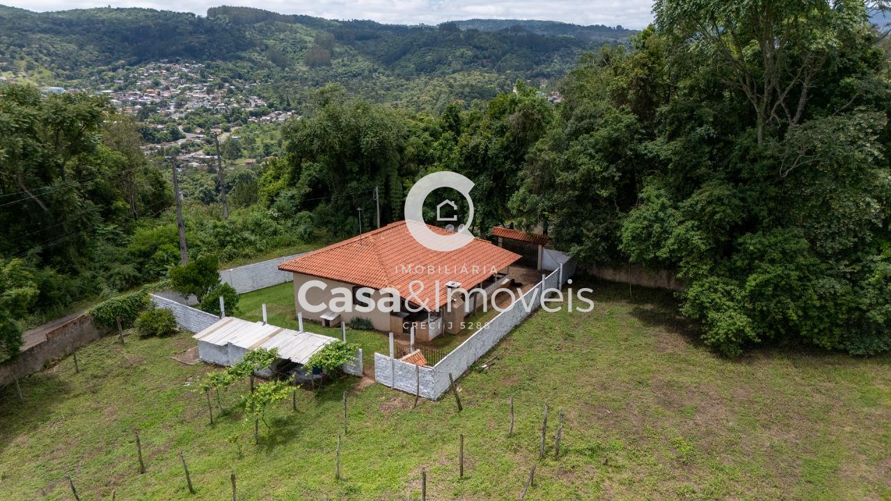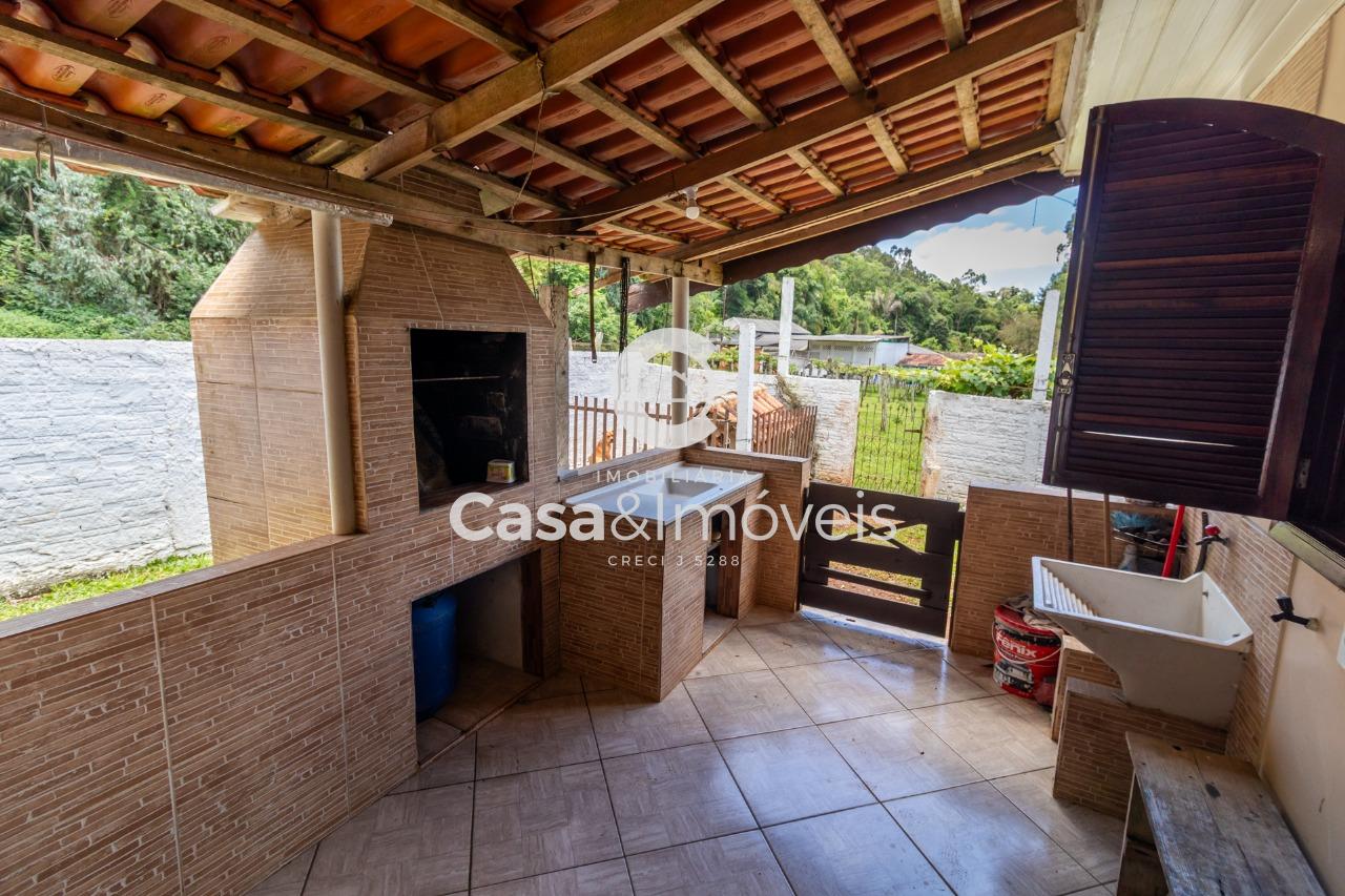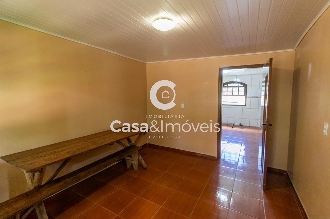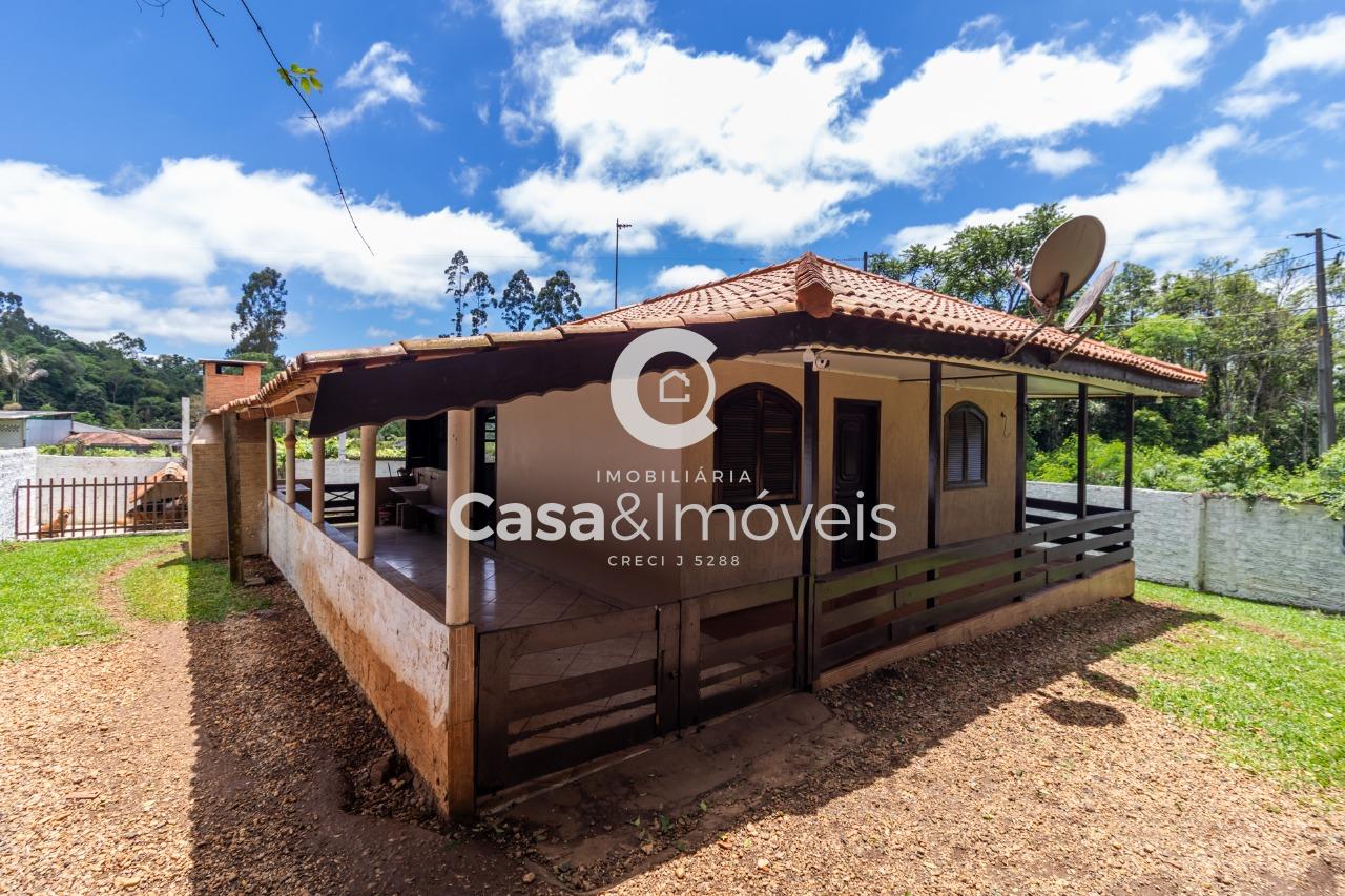 Contendo uma casa de alvenaria com aprox. 100,00 m² de área construída, contendo: - 02 dormitórios - Sala - Cozinha - Banheiro - Varanda com churrasqueira - Lavanderia - Garagem coberta + Barracão com aprox. 100,00 m² de área construída + Canil, árvores frutíferas, água de poço artesiano